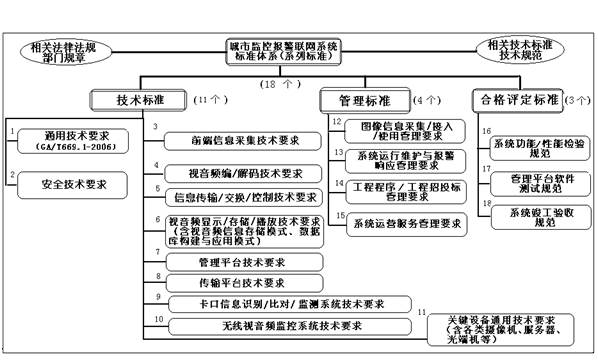 二、城市監控報警聯網系統標準體系(共18項標準:技術標準11項、管理標準4項、合格評定標準3 項)