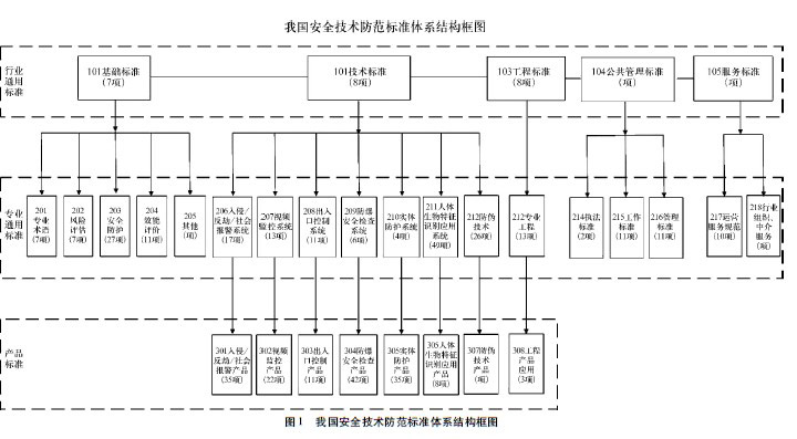 本標準體系縱向劃分了基礎標準、技術標準、工程標準、公共管理標準和服務標準五個子體系。鑒于支撐安全技術防范工作的重要性,將術語、風險評估、安全防護和效能評估標準納入基礎標準子體系中;將安全防范系統和入侵/反劫/社會報警系統、視頻監控系統、出入口控制系統、防爆安全檢查系統、實體防護系統、人體生物特征識別應用系統、防偽技術等子系統以及各類產品標準納入技術標準子體系中;將安全防范工程設計、施工、檢測、驗收和產品應用等納入工程標準子體系;將執法標準、工作標準和管理標準納入公共管理標準子體系;將安防系統運營服務、行業組織和中介服務納入服務標準子體系。