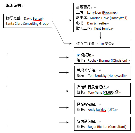 PSIA聯盟主要為會員單位提供不需要任何許可授權的標準和規范,并對整個行業秉承“開放、合作”的原則。目前,為五個工作組提供了統一的標準和規范,包括IP視頻組、視頻分析組、存儲和目錄管理組、地域控制組和安防系統組。
