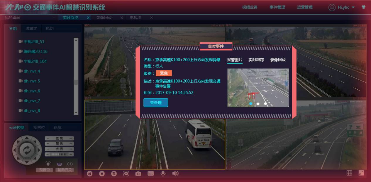 交通事件AI智慧识别系统是为高速公路路网监控、应急调度等部门提供的一款基于人工智能的事件检测系统。该系统通过深度学习算法,可以检测高速公路上发生的异常事件,同时可以检测车辆的类型。异常事件发生后10秒内,交通事件AI智慧识别系统可以自动感知,以警笛、联动大屏等方式通知管理人员,将管理人员从24小时人工盯大屏的模式中解放出来,能够第一时间自主发现异常警情。
